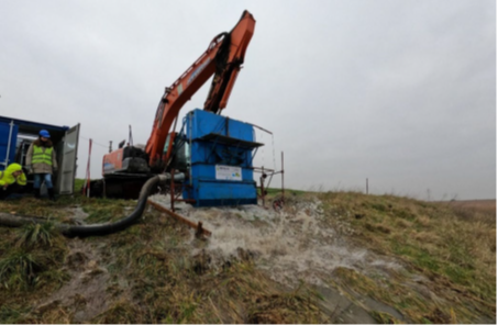 From 23 March to 13 April 2026, we will conduct wave impact tests to assess the resistance of the lime-treated cover layer to wave attack on a test section of the ring dike of the Controlled Flood Area Vlassenbroek.